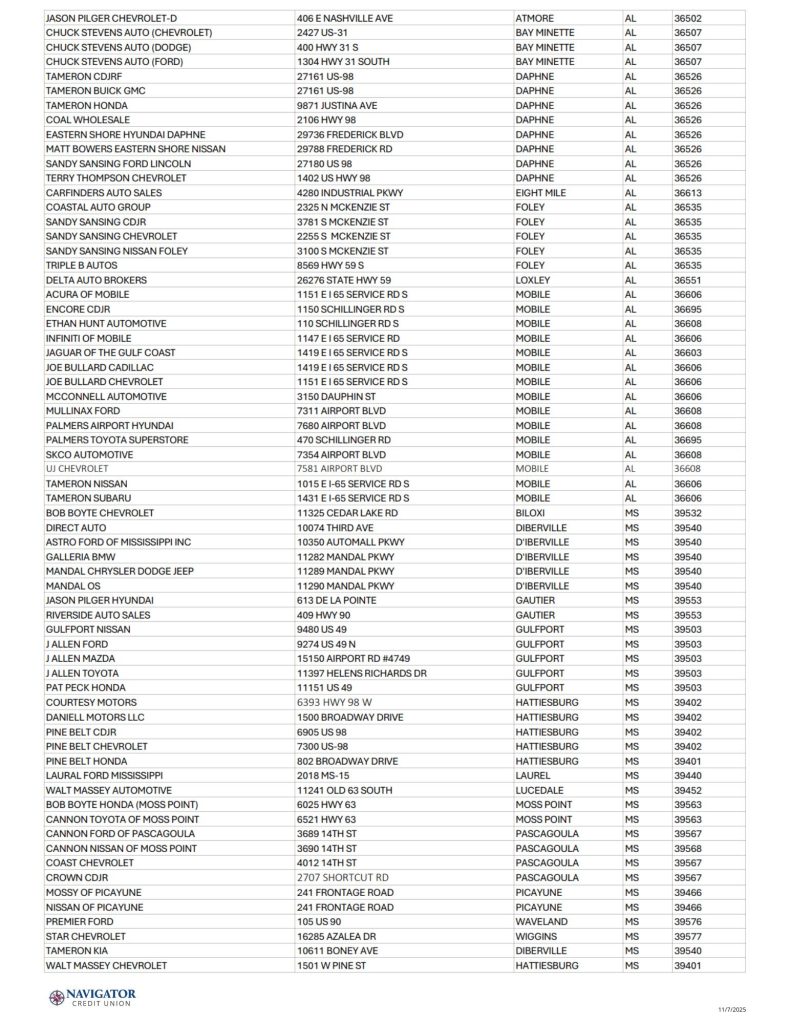 - Preferred Dealers: See Navigator’s preferred dealerships to ensure a smart purchase.